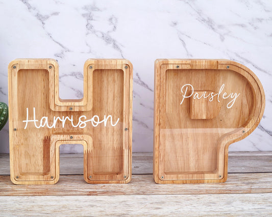 Wooden Letter Piggy Bank,Wooden Money Box,Custom Initial Coin Bank,Name Piggy Bank, Money Box,Name Piggy Bank,Money Box,Gift for Child