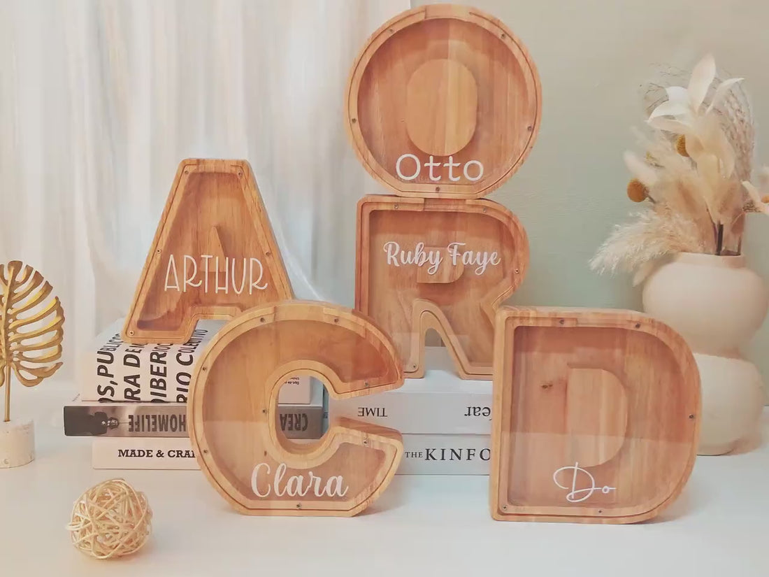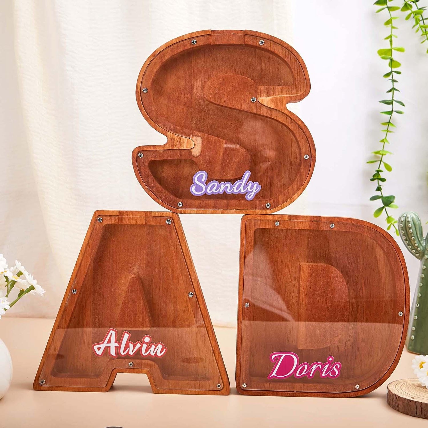 Personalized Wooden Letter Piggy Bank,Custom Name Coin Bank,Kids Girl Boy Birthday Gift,Unique Baby Shower Gift,Sibling Christmas Gift