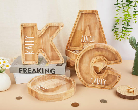 Wood Piggy Bank,Letter Coin Bank for Kids,Wooden Bank,Wooden Piggy Bank,Personalized Gift for Children,Grandchild Gift,Gift for Kids